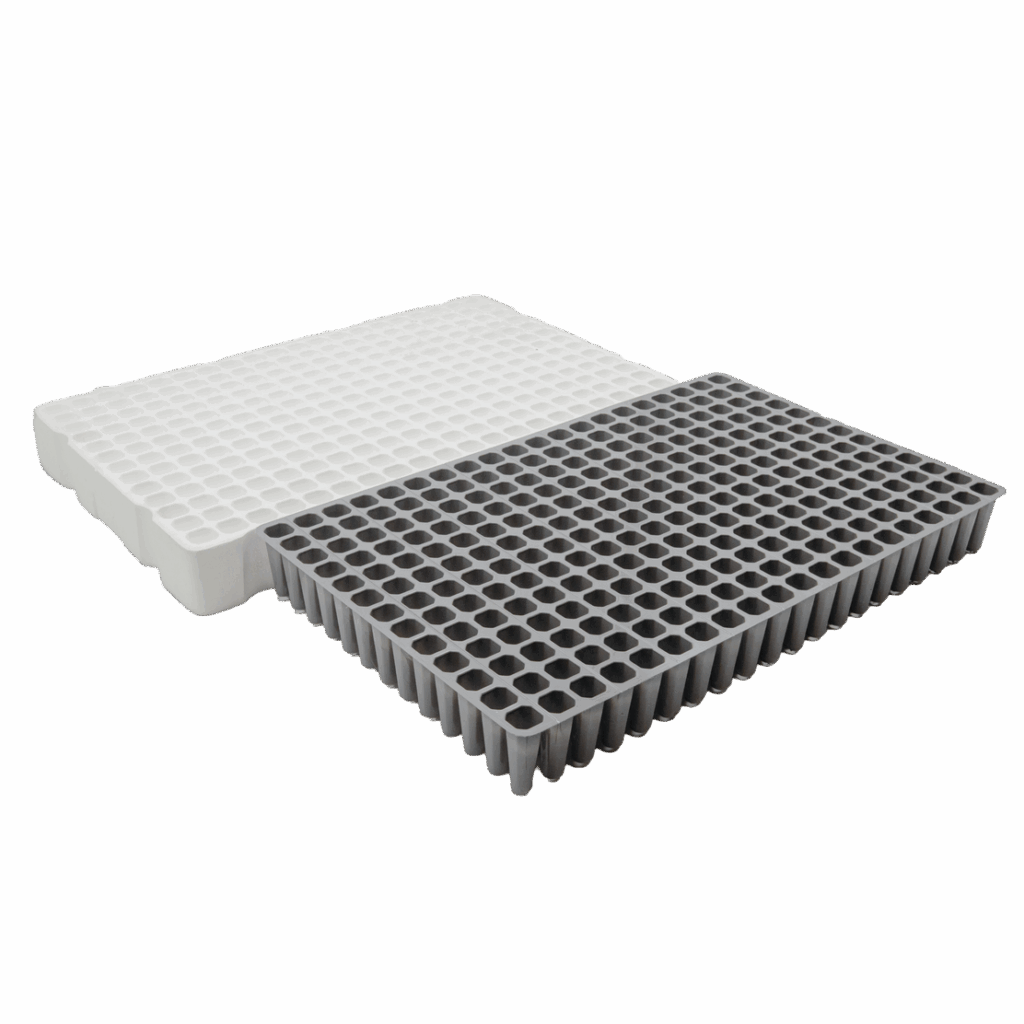 La gamma include diverse misure e configurazioni, con possibilità di realizzare modelli dedicati su richiesta. Le seminiere sono disponibili in grigio per la versione in R-PET e in nero per quella in PS, offrendo qualità e funzionalità in ogni fase della coltivazione.